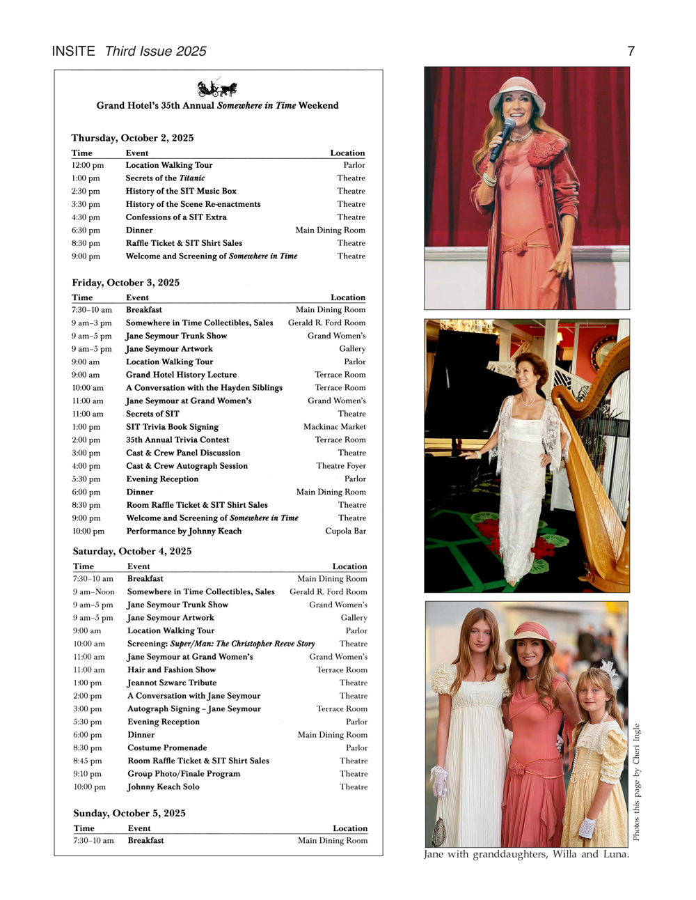 Returning this year again was Bill Shepard, INSITE Founder, and author of the making-of/legacy book “The Somewhere in Time Story” which had its 45th Anniversary Edition released in August. And for the first time, Alice Williams Jung joined the festivities. Alice is the daughter of Roger Williams, world-renowned pianist, who played the Somewhere in Time Theme during the movie's end credits. He earned a Gold Record for the recording of his performing the SIT John Barry Theme.